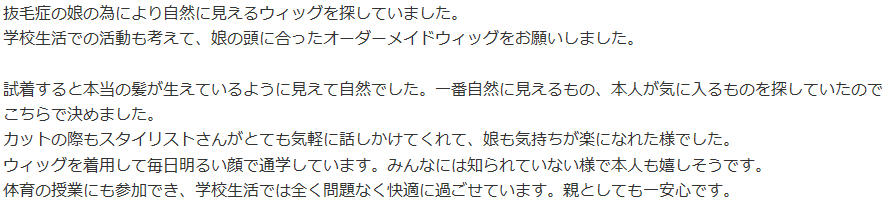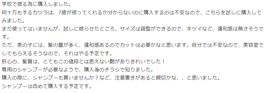 子供用ウィッグを購入した親御さんの感想です。
